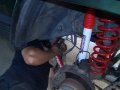 rechte Feder - ein Spanngurt dient als Federspanner-Ersatz